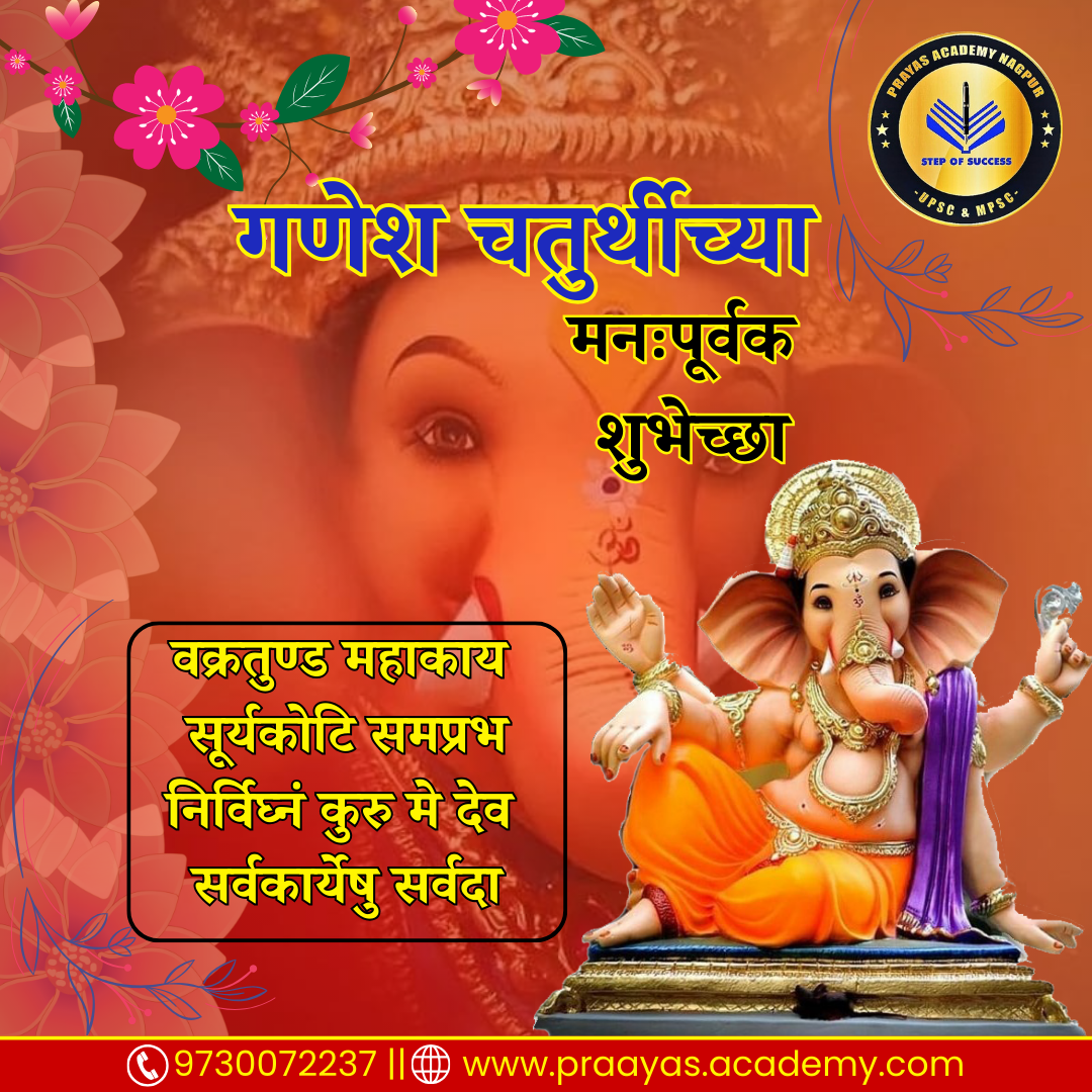 Best UPSC / MPSC Classes in Nagpur.! 🔥 Prayas Academy – Step of Success 🔥 🙏✨ गणेश चतुर्थीच्या हार्दिक शुभेच्छा ✨🙏 या मंगलमय पर्वाच्या निमित्ताने प्रयास अकॅडमी तर्फे सर्व विद्यार्थ्यांना ज्ञान, यश आणि उज्ज्वल भविष्यासाठी मनःपूर्वक शुभेच्छा! 🌸 विघ्नहर्ता गणपती बाप्पा तुमच्या अभ्यासातील सर्व अडथळे दूर करून यशाच्या वाटचालीत मार्गदर्शक ठरो 🌸 — प्रयास अकॅडमी One of the best coaching institutes for UPSC & MPSC in Nagpur! 💯📚 ✨ Your Dream, Our Mission! ✨ ✅ Expert Faculty ✅ Comprehensive Study Material ✅ Personalized Guidance ✅ Proven Results Join us & take your first step toward success in civil services! 🚀 📍 Visit us today! #UPSC #MPSC #PrayasAcademy #StepOfSuccess #Nagpur #UPSCPreparation #mpscclassesonline.