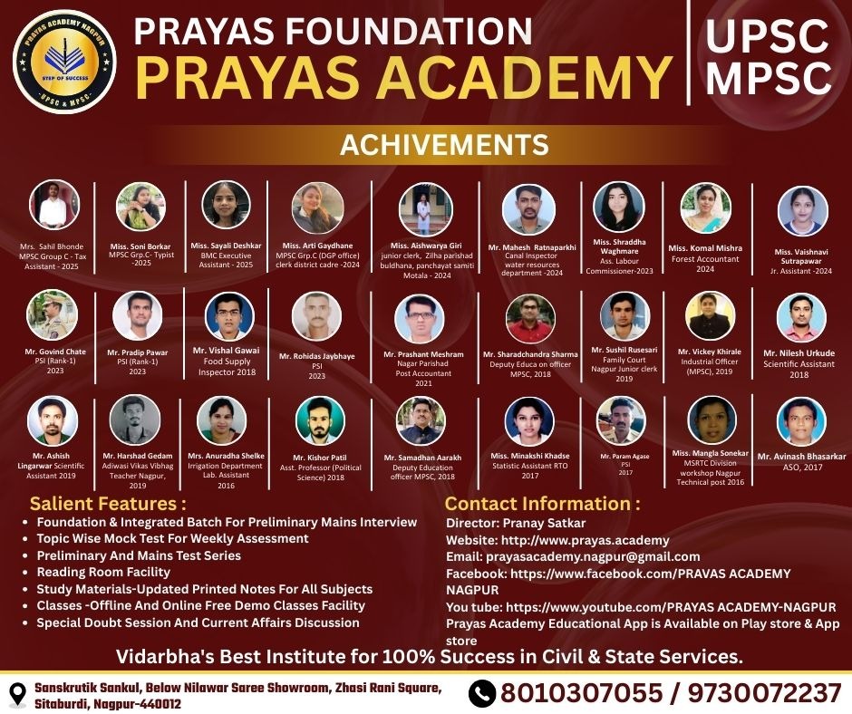 Shaping Futures with Knowledge & Discipline Join a coaching institute where learning meets excellence. Expert faculty, disciplined environment, regular tests, and personal guidance for MPSC / UPSC aspirants. 📚 Quality Teaching 🎯 Result-Oriented Preparation 🏆 Proven Track Record Admissions Open – Enroll Now!