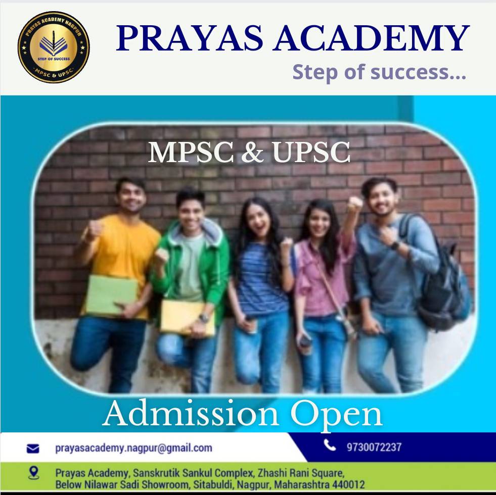 PRAYAS ACADEMY NAGPUR MPSC & UPSC INSTITUTE BEST MPSC CLASSES IN NAGPUR BEST UPSC CLASSES IN NAGPUR JOIN PRAYAS ACADEMY FOR 100% SUCCESS. ADMISSION OPEN
